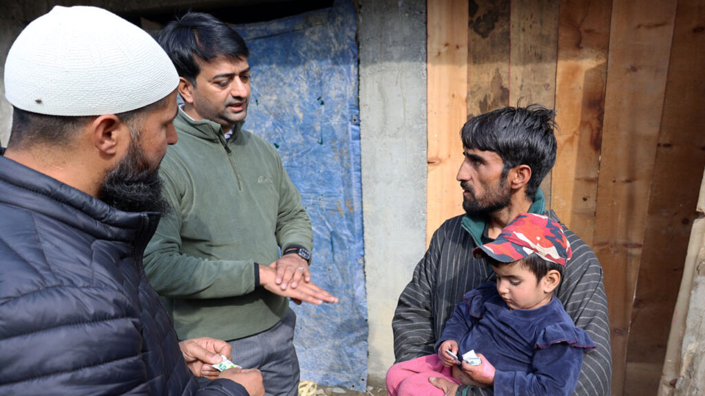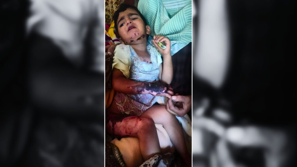 As our volunteers moved from one house to another, distributing food packets and hygiene kits, a worried father approached them. He was holding his little daughter, barely three years old, her right leg wrapped hastily in a piece of cloth. The child’s eyes were filled with pain and confusion, her small face pale from fever and fright. The father’s trembling voice broke as she explained that the little girl had been accidentally burned by hot tea a few days earlier.