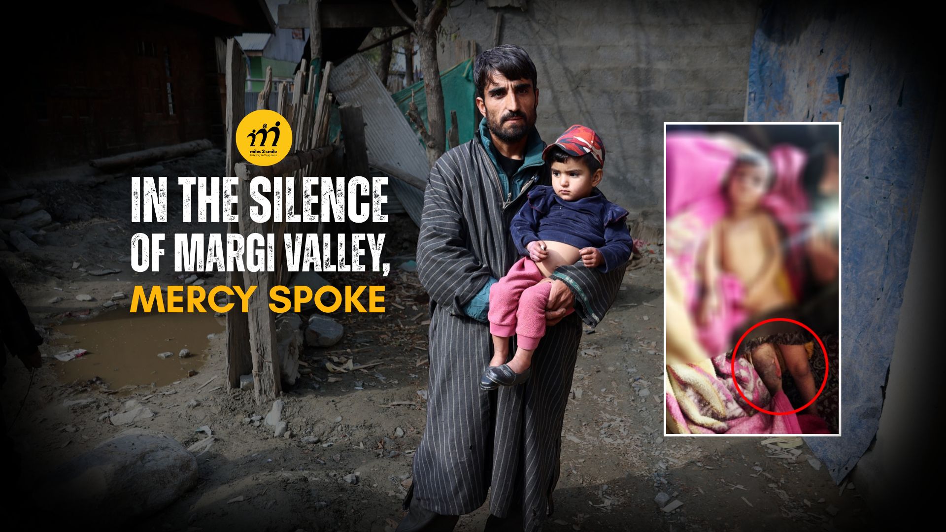 In the remote village of Margi, tucked away between uneven fields and broken roads, time seems to move slower. After the recent floods, the people of Margi were left stranded, cut off from the nearest town, without medical aid, electricity, or the most basic facilities. When our Miles2Smile team began its rounds of post-flood relief work there, we thought we had seen most of the damage: submerged homes, destroyed crops, and weary faces. But sometimes, the deepest wounds are found in the smallest stories.
